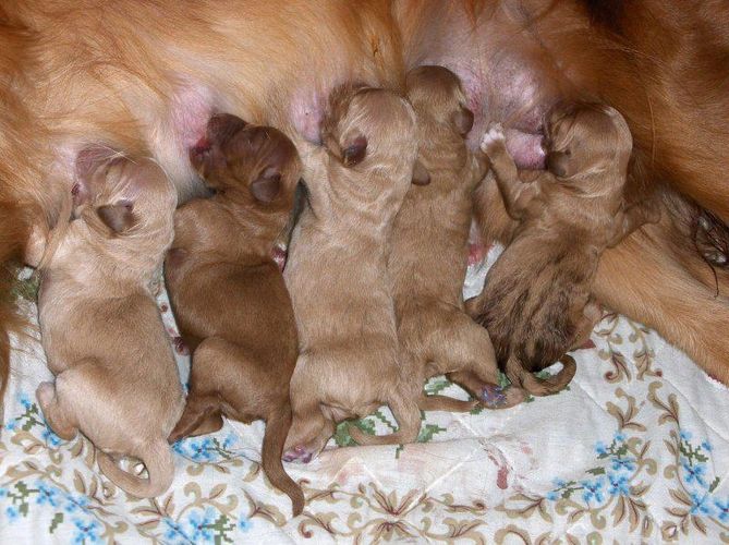 The canines are provided with DNA profiling, microchipping, and current immunizations. You will not find another breeder who offers a six-year health guarantee. The litters are both AKC and CKC registered. You must pay a $500 application reservation fee and a balance of $1,080 plus sales tax. Golden Beauties charges $0.75 per mile for delivery.
